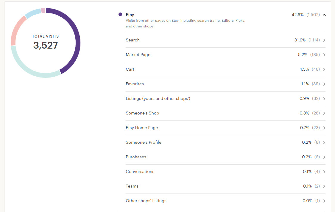 So where is my buying audience? They’re out there meeting me at the markets, and shopping my Etsy store. How do they find my Etsy store? Etsy helps answer that question…warning: graphic content ahead-as in graphs.